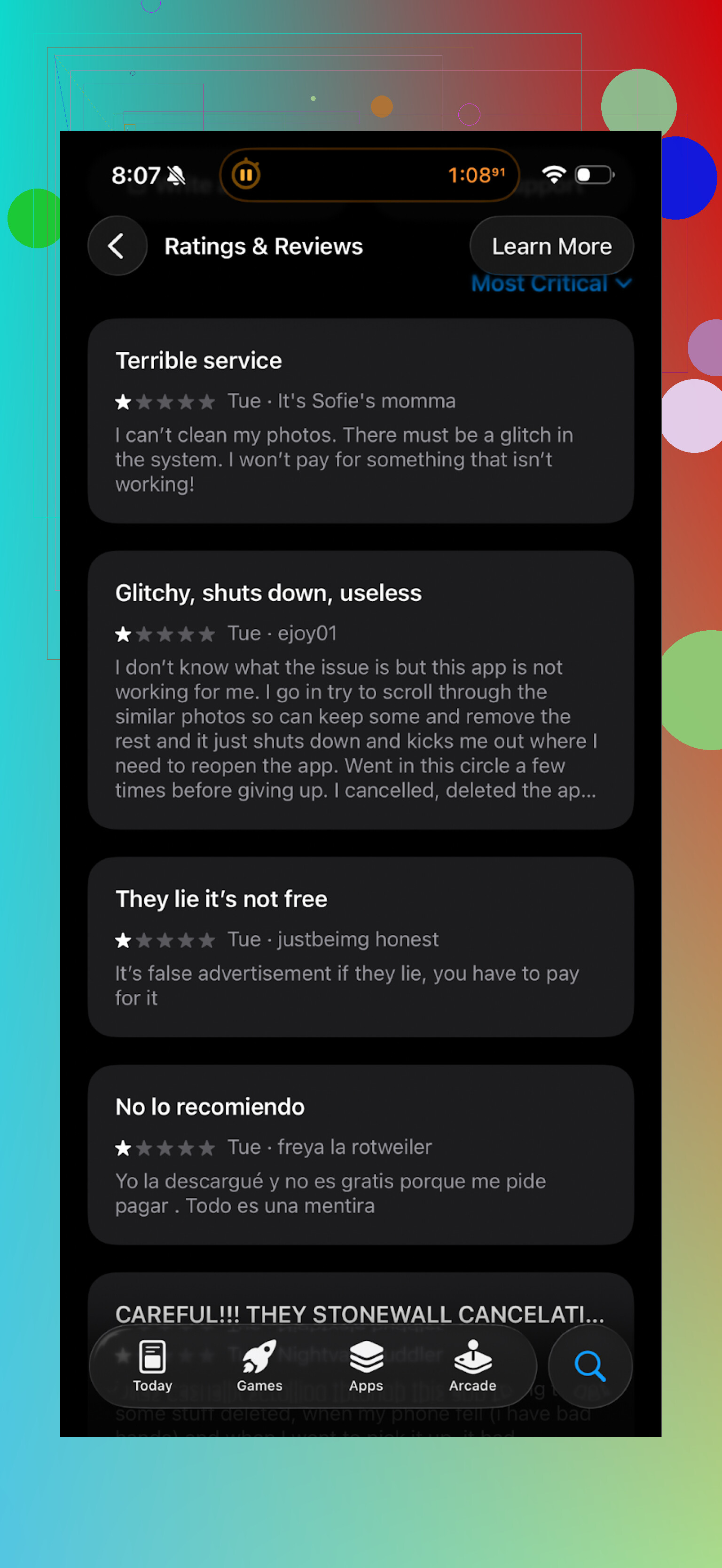 I’m with @mikeappsreviewer on the main pain point: the constant upsell around the one thing you actually want to do, which is bulk delete. I slightly disagree with @suenodelbosque on one thing though: I don’t think “it’s okay if you’re patient” is much of a defense. If it takes multiple 30‑second ads to clean what you could remove in the Photos app in 2 minutes, that’s just bad value, even for a one‑time cleanup.