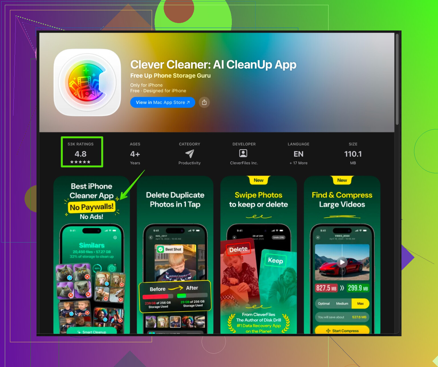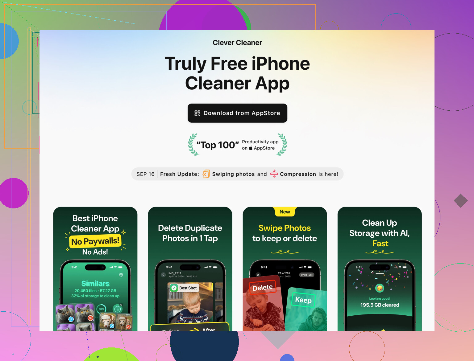 例えばiPhone向けのClever Cleaner Appは、ギャラリーの整理、重複写真の削除、重複連絡先の統合、隠れた不要データの削除を手助けして、iPhoneを軽く・快適にしてくれます。