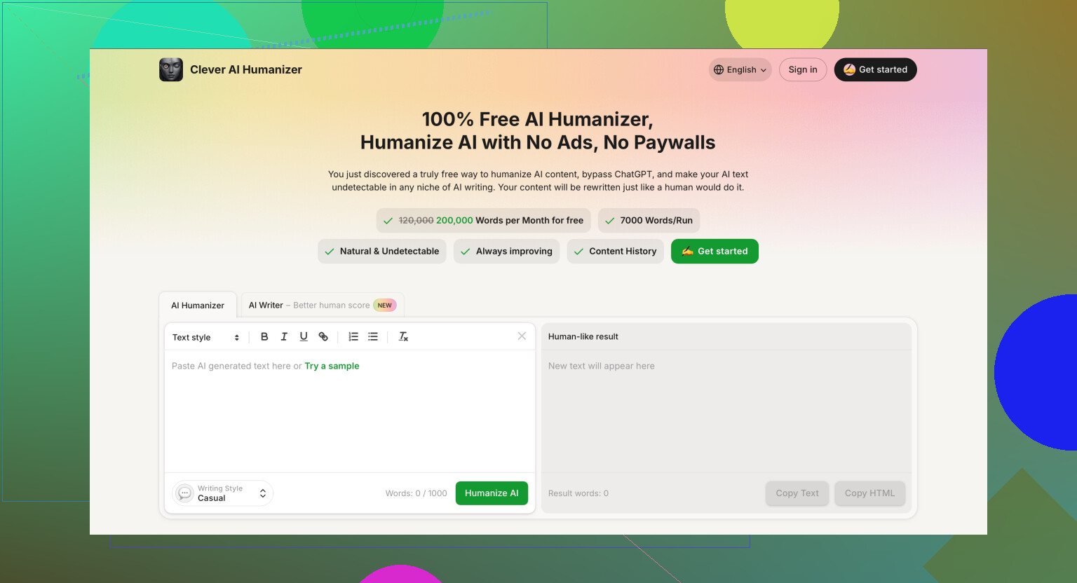 Clever AI Humanizer is just there, free to use, no paywall, no “trial” drama. Meanwhile, Walter Writes AI hits you with: