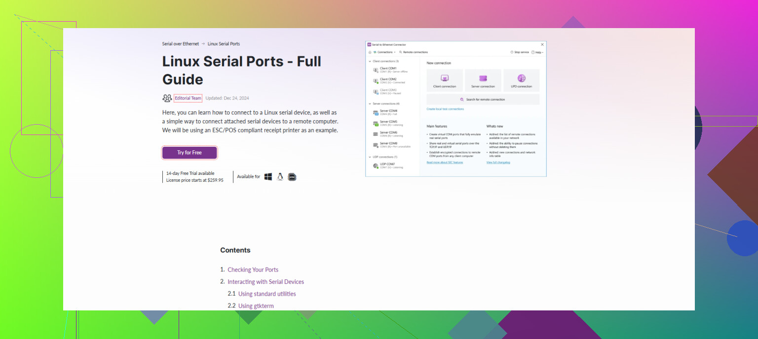 That is exactly what tools like Serial to Ethernet Connector are designed for. It is not some giant “heavy daemon,” it’s a focused serial over network solution that: