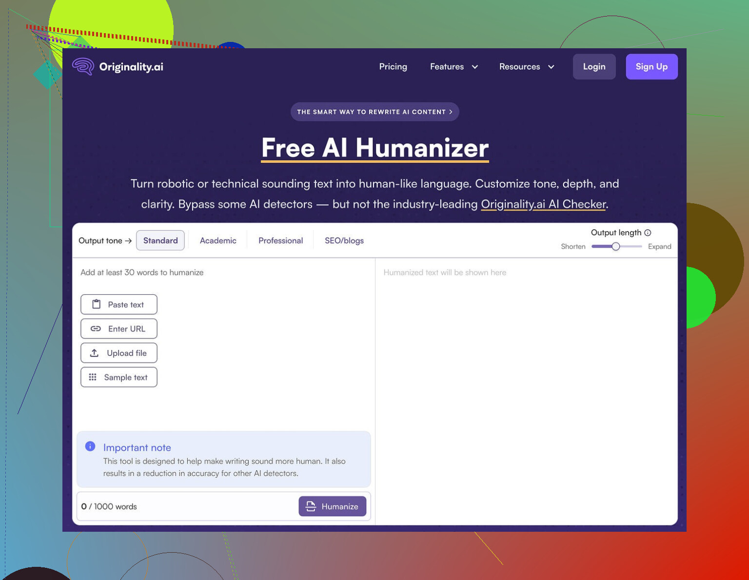 The humanizer sits there as a free “toy” so people land on the Originality site. Once you are in, you see the paid AI detection tools and the rest of their stuff.