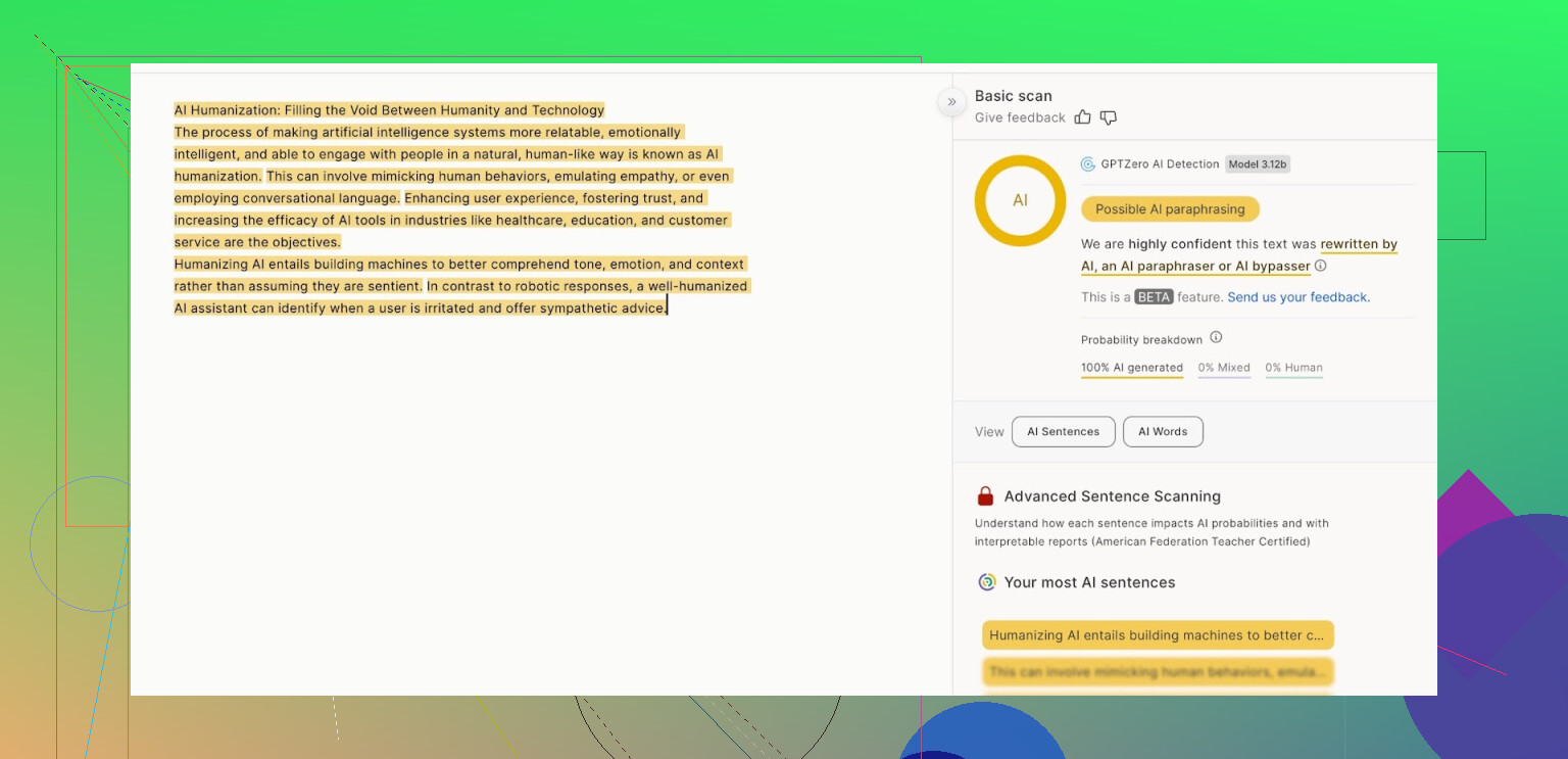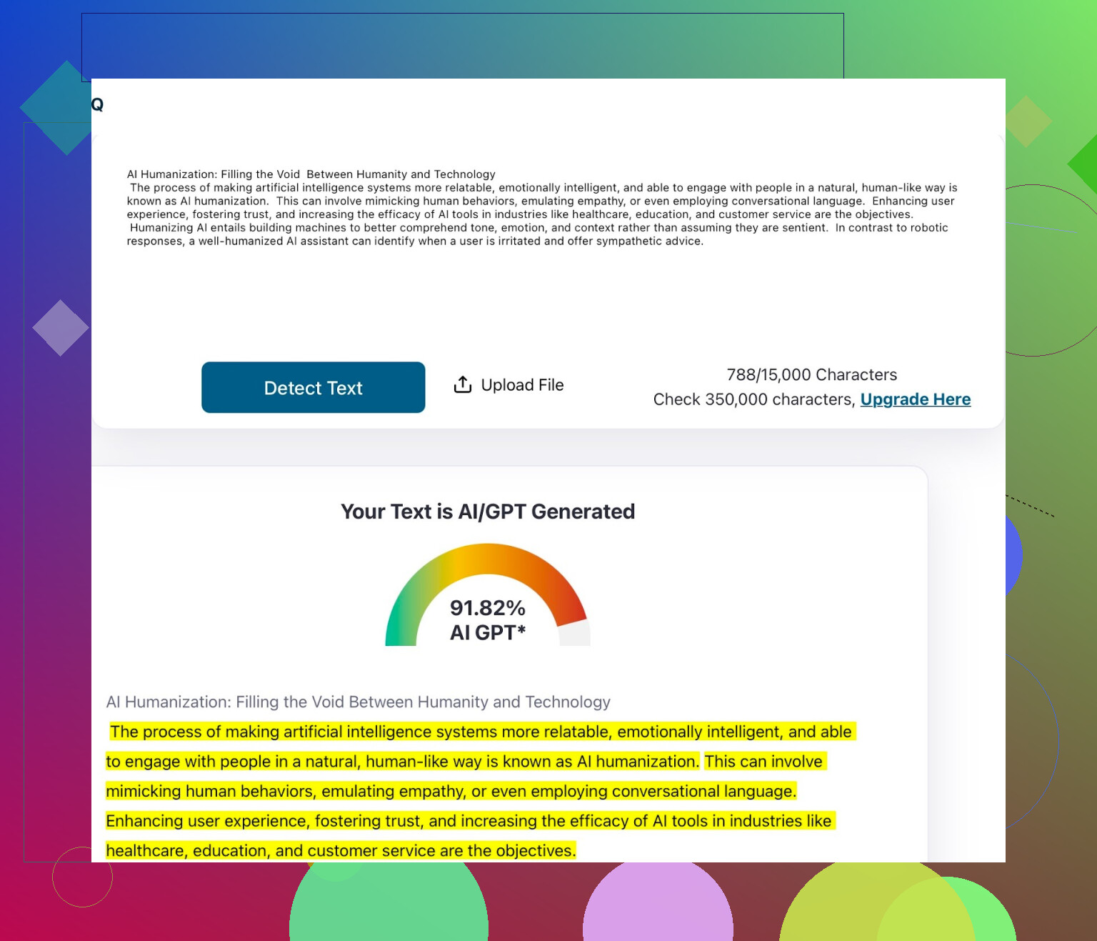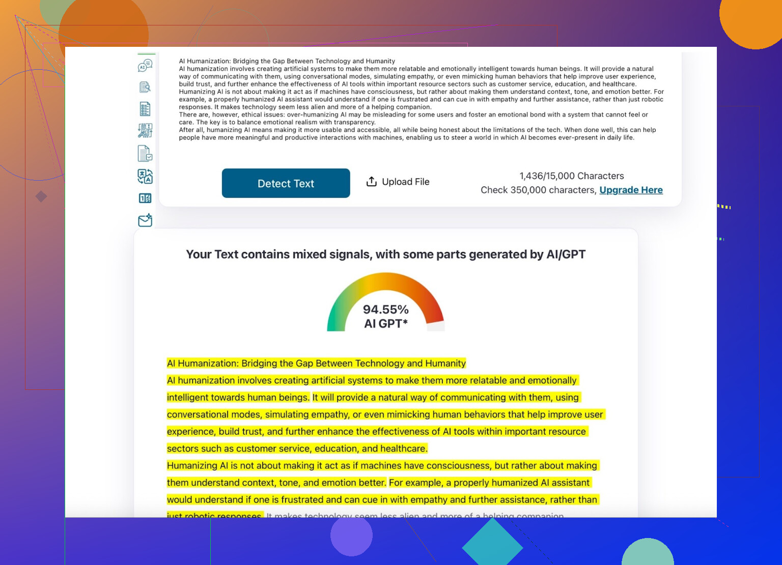 Spoiler : Leur propre détecteur identifie leur texte comme étant de l’IA. Aïe. Honnêteté ou négligence, peu importe — si tu comptes dessus pour tromper les vérifications, c’est raté.