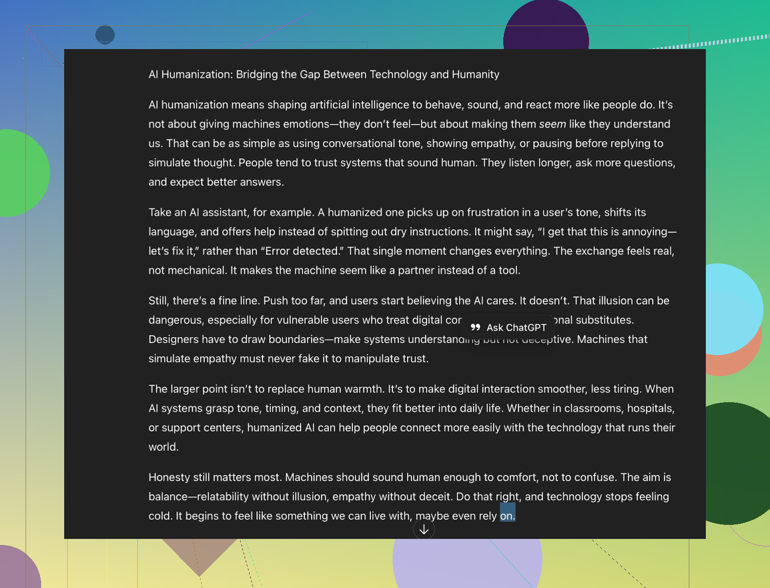 Mon avis, sans filtre : les outils d’humanisation sont une béquille. Ils peuvent te faire passer les contrôles anti-IA, mais pour un vrai style humain, fais confiance à ton instinct. Prends ce que Clever Ai Humanizer te donne, puis « abîme-le »—dans le BON sens. Ajoute une question, une métaphore inattendue, un peu d’argot, ou coupe une phrase pour donner du rythme. Il m’arrive même d’écrire des trucs du style “Franchement, allez !” ou d’ajouter une remarque maladroite, et BAM, on dirait vraiment que c’est moi qui écris un jour sans inspiration.