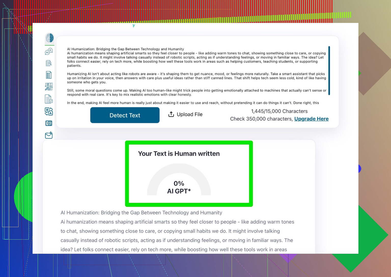 Donc, voilà. Vous n’êtes pas totalement hors de portée des détecteurs, mais c’est assez “humain” pour des usages concrets. Pas parfait, mais franchement cool — surtout gratuitement.
