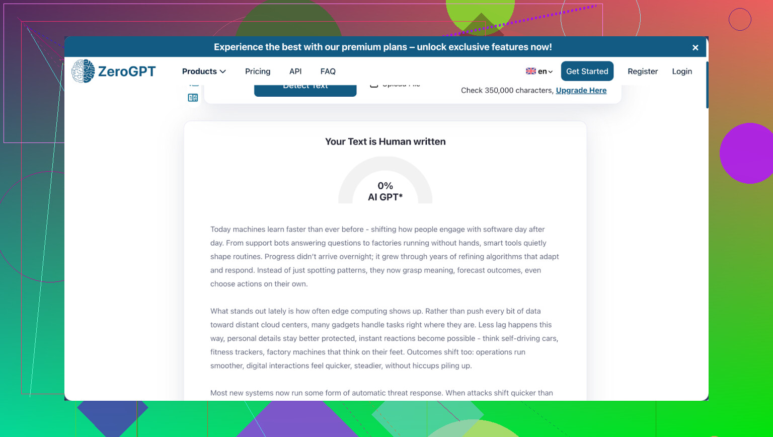 - It includes its own checker, which tends to be more optimistic than GPTZero or ZeroGPT, so confidence feels inflated.